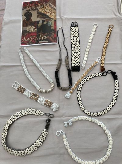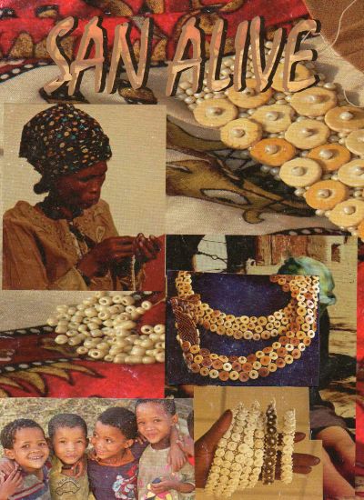 The San People of Namibia The San are the indigenous people of the southern African region who have inhabited the land for around 27,000 years. They were the original hunter/gatherers of southern Africa. With the enclosure and fencing of their original habitat they have become a dispossessed people. The San are widely recognised as the most impoverished disempowered and stigmatised ethnic group in southern Africa. As with the Red Indians in North America and the Aborigines in Australia they have a low tolerance to alcohol which has caused problems. They tend to be treated as second class citizens and find employment as farm labourers or domestic servants. In Namibia, the government have purchased a number of farms and resettled the San on them where they have planted crops and have cattle. On one such farm at Skoonheid in the Omaheke region, a local retired GP, the late Dr Helene de Kok mobilised the women into making their traditional jewellery using beads and ostrich egg shells to provide an income for themselves. The jewellery is sold in the craft shops in the capital, Windhoek and other specialist outlets. In the UK, it is sold by the Catherine Bullen Foundation on behalf of the San women and the proceeds are sent back to them through the late Dr de Kok's family.